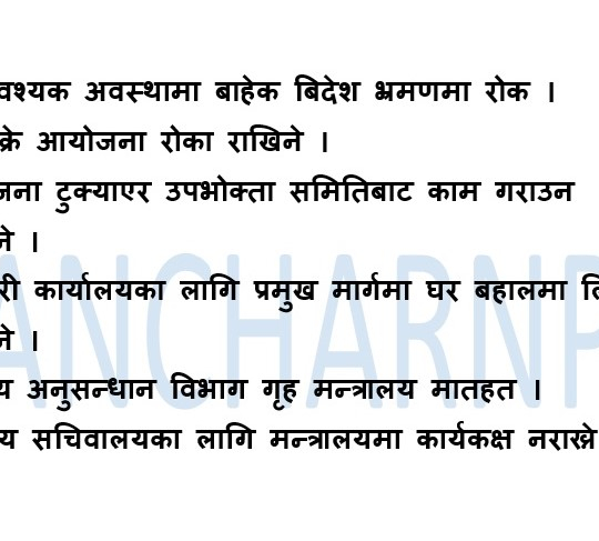 - अत्यावश्यक अवस्थामा बाहेक बिदेश भ्रमणमा रोक ।